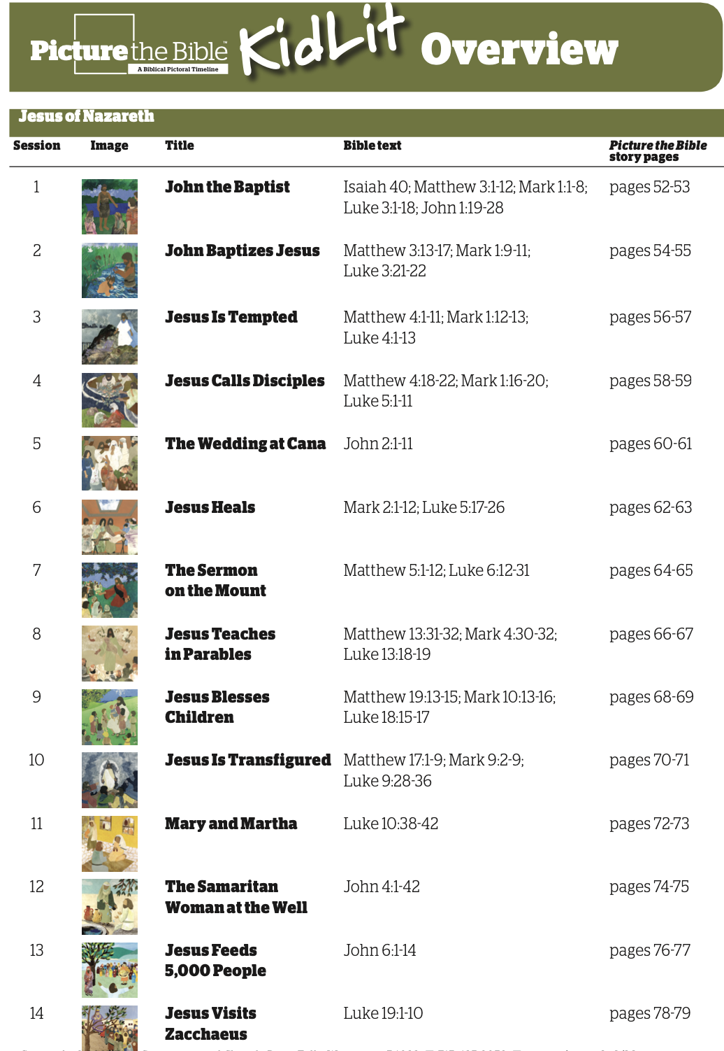 Jesus of Nazareth is the fifth unit in the KidLit series. This set of lessons explores 14 stories of Jesus’ life, from his baptism and Calling the Disciples to ten well-loved stories of Jesus’s ministry.