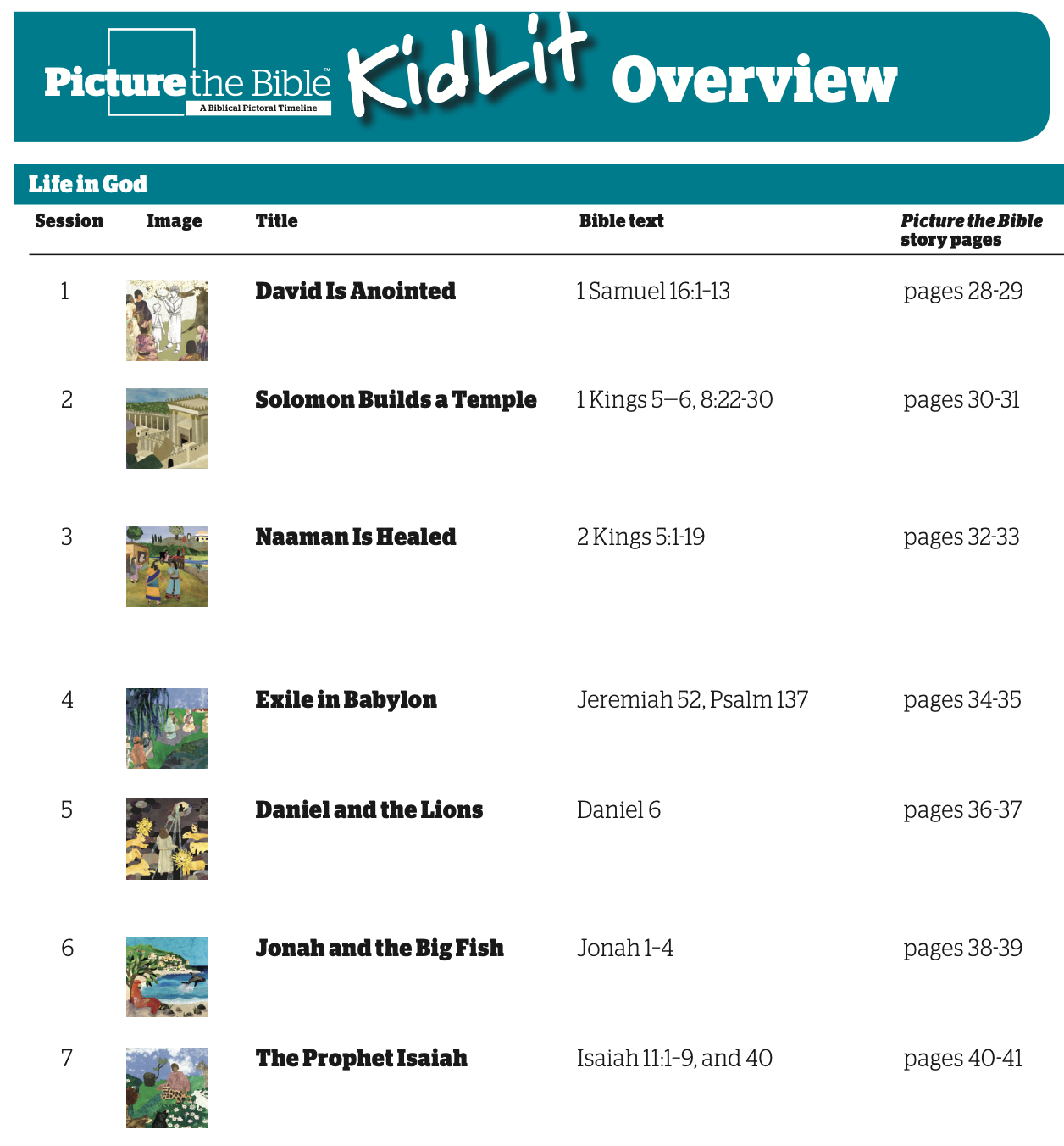 God’s Servant Moses is the third unit in the KidLit series. This unit is all about the life of the people of Israel in their new home, beginning with the Anointing of David. Lessons include the David Is Anointed, Solomon Builds a Temple, Naaman Is Healed, Exile in Babylon, Daniel and the Lions, Jonah and the Big Fish, and The Prophet Isaiah.
