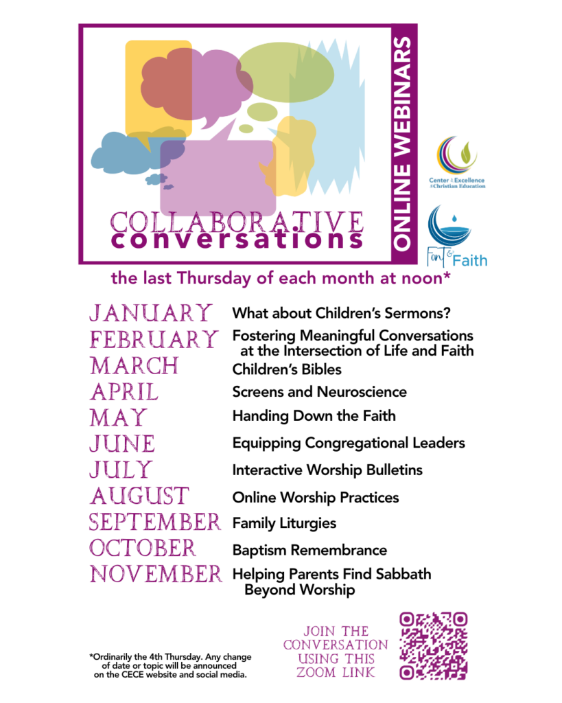 Collaborative Conversations are monthly virtual events led by a wide array of experts including artists, practitioners, members of the Creativity and Innovation Cohorts, the Researchers Roundtable teams, parents, experts in various fields, seminary professors and students. These interactive forums will be topical, provide insights, and space for dialogue. Each Collaborative Conversation will be recorded and made available.Collaborative Conversations are intended to be responsive to expressed needs in Christian education. If you have an idea for a topic, please share it in the Spark Conversations section of the website.